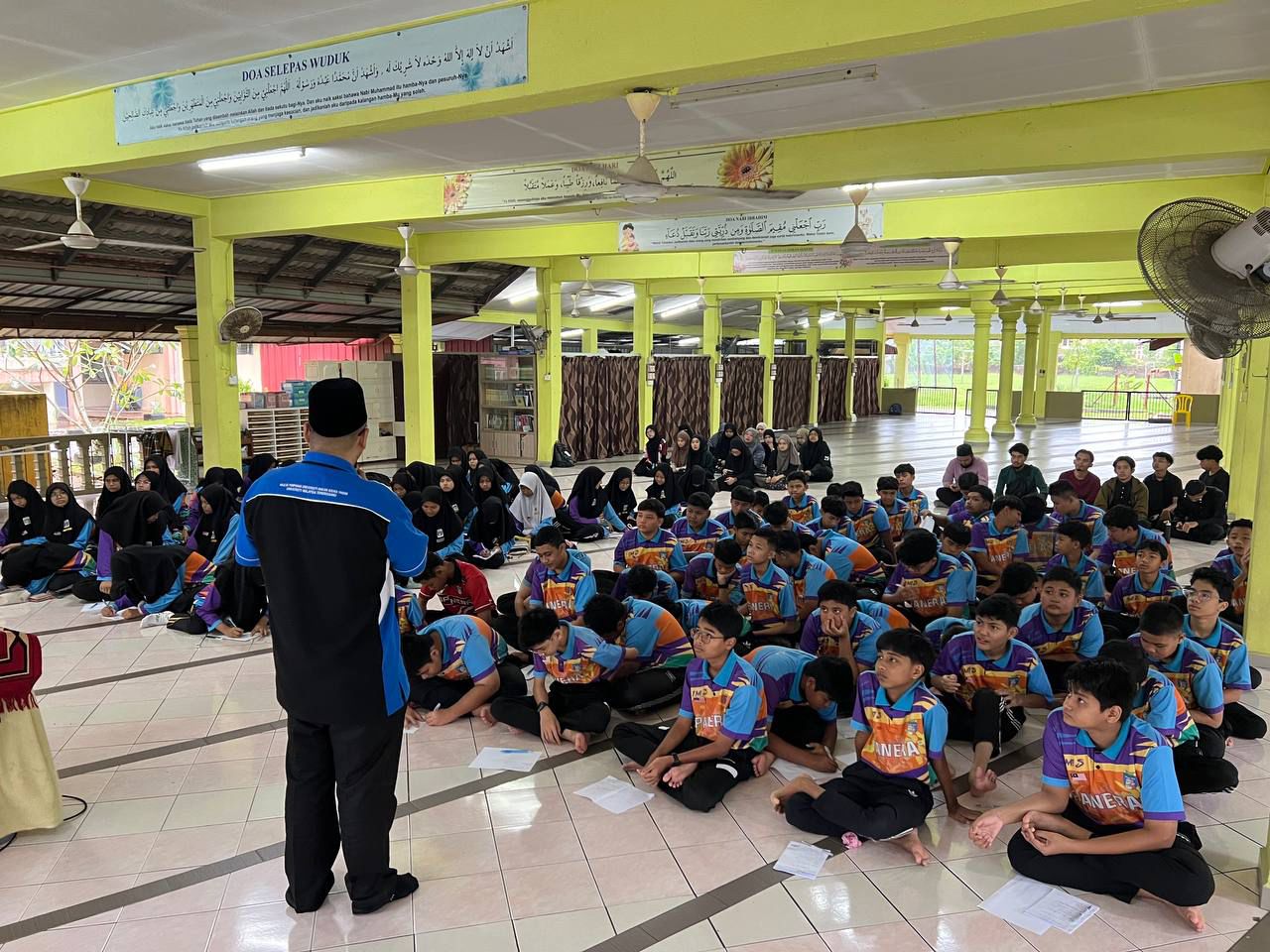 SMK Padang Negara, 26 November 2025 – The SMK Padang Negara Prayer Smart Camp Program has been successfully implemented with the participation of 100 Form 1 students. This program focuses on basic guidance on ablution, recitation in prayer, and the practice of congregational prayer as an effort to strengthen understanding and appreciation of worship among students.