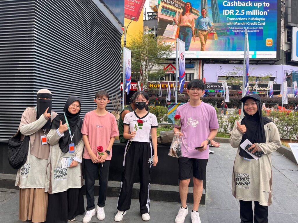 Bukit Bintang, Petaling Street, Berjaya Timesquare, Kuala Lumpur, 18 – 21 Disember 2025 – Kelab PERKIM Universiti Malaysia Terengganu (UMT) telah menganjurkan Mega Street Dakwah 4.0 dan Bukit Bintang Berselawat bertempat di Kuala Lumpur, sebagai usaha menyampaikan mesej Islam kepada komuniti bukan Muslim melalui pendekatan dakwah lapangan yang terbuka, berhikmah, dan penuh kasih sayang. Program ini turut memupuk persepsi positif terhadap Islam serta menggalakkan interaksi harmonis antara komuniti Muslim dan bukan Muslim.