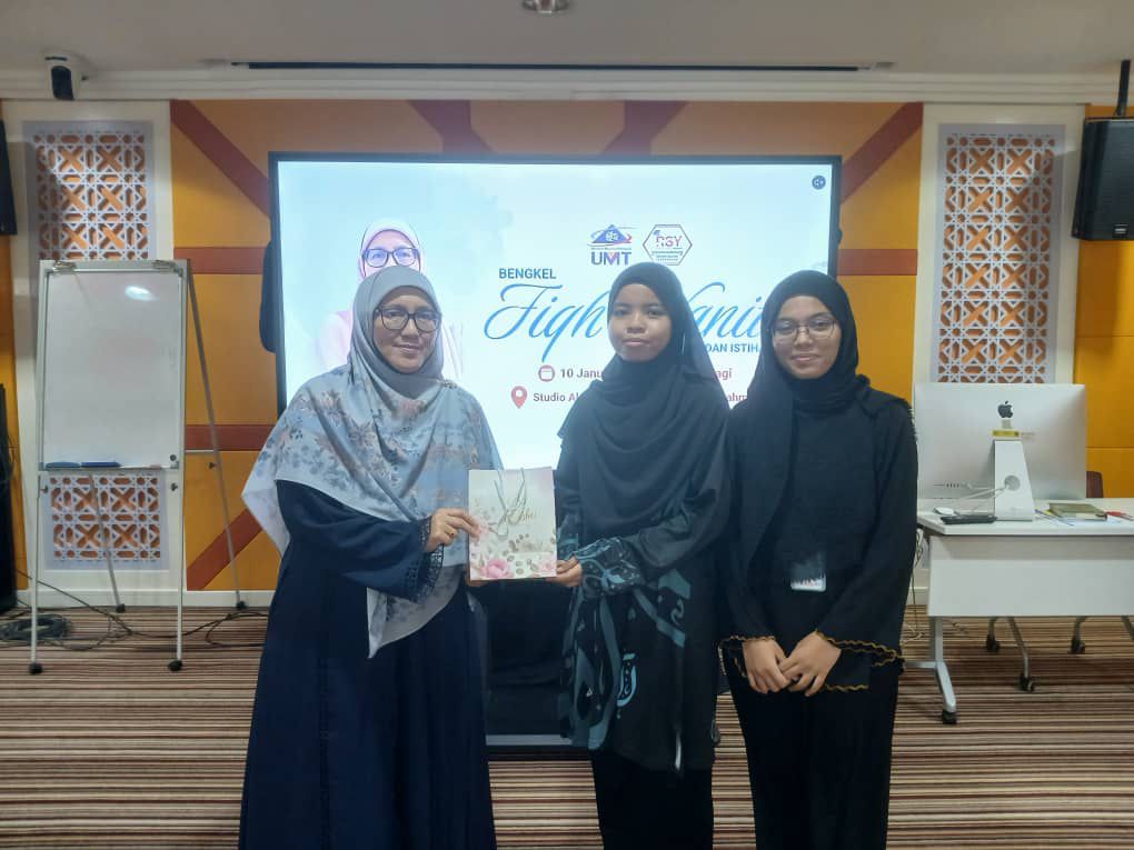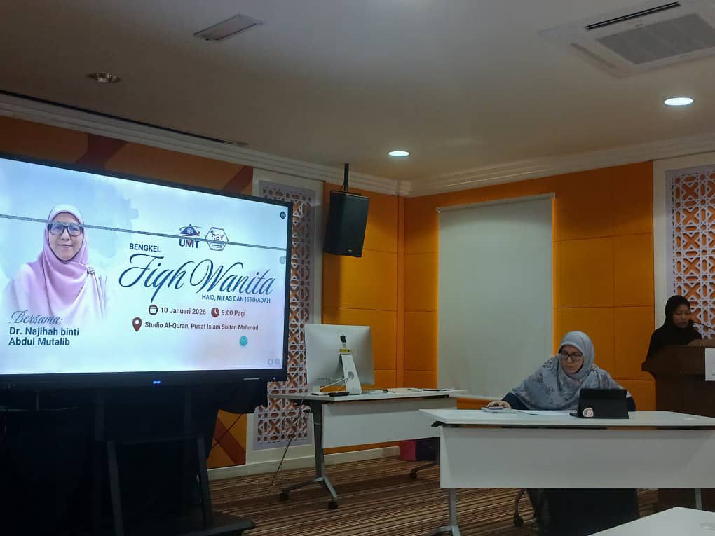 Studio Al-Quran PISM UMT, 10 Januari 2026 – Satu Bengkel Fiqh Wanita bertajuk Haid, Nifas dan Istihadah anjuran Kelab Rakan Siswa YADIM (RSY) UMT telah berjaya dilaksanakan bermula jam 9.00 pagi dengan pengisian disampaikan oleh Dr. Najihah binti Abdul Mutalib, Pensyarah Pusat Pendidikan Asas dan Lanjutan, Universiti Malaysia Terengganu (UMT).
